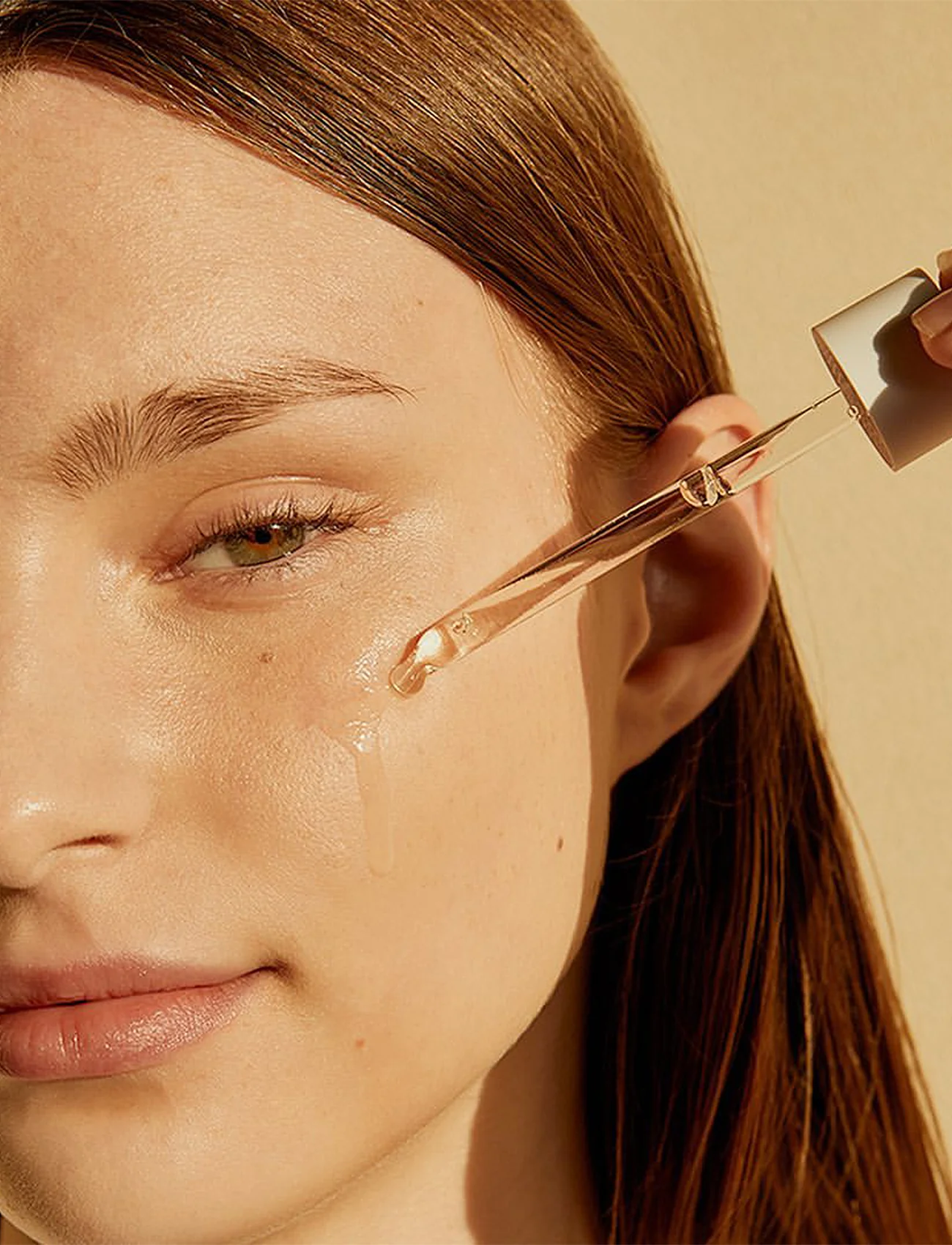 • مرحله 3: استفاده از آمپول سنتلا با استفاده از قطره‌چکان، 3 تا 5 قطره از آمپول را روی پوست تمیز صورت بریزید. می‌توانید آن را روی گونه‌ها، پیشانی و چانه پخش کنید.