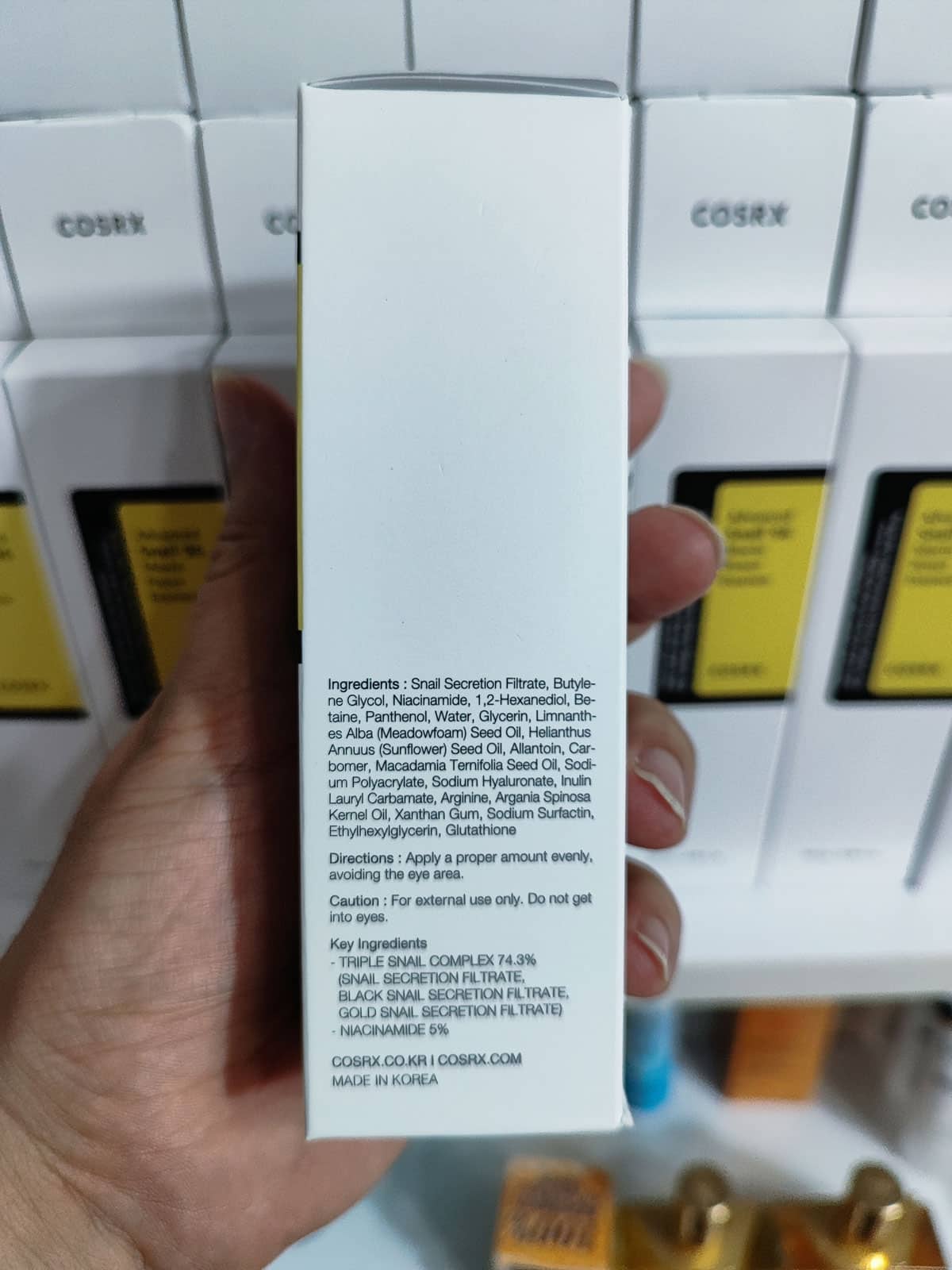 - گلوتاتیون: گلوتاتیون موجود در اسنس دوگانه حلزون موجب بهبود رنگ پوست و رنگ پوست میگردد.