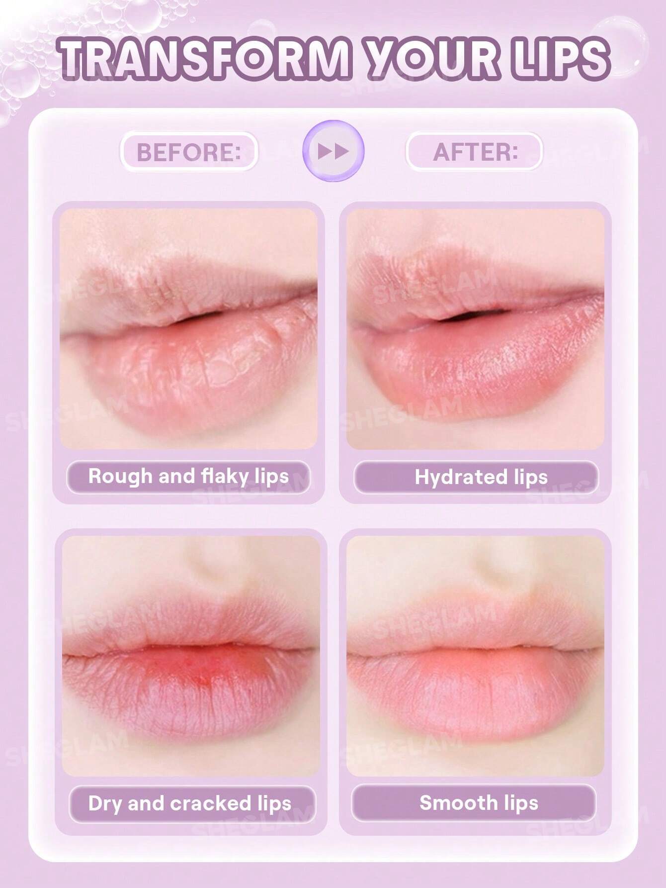 لب‌ها نیز مانند سایر قسمت‌های پوست، سلول‌های مرده تولید می‌کنند که می‌توانند باعث خشکی، پوسته‌پوسته شدن و کدری شوند. لایه‌برداری منظم لب‌ها با محصولاتی مانند “Sheglam Bubble Buff Lip Scrub” دارای مزایای متعددی است: