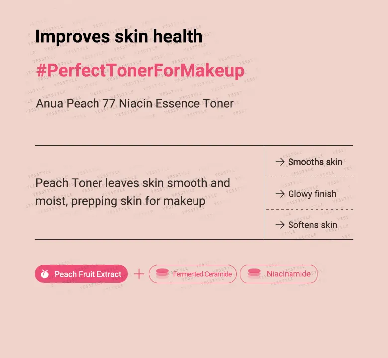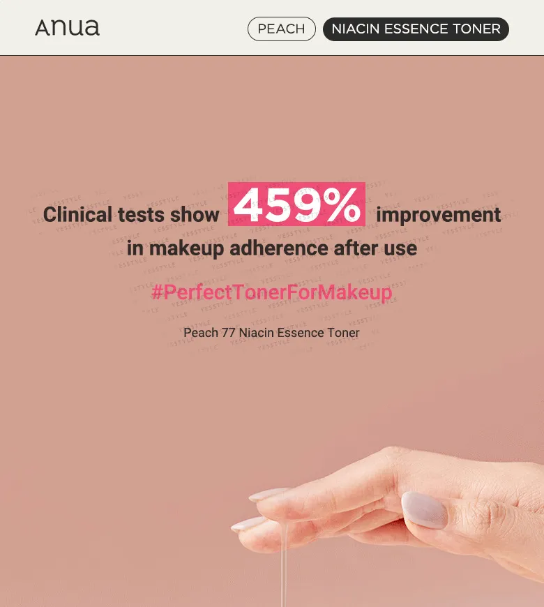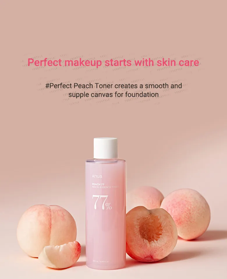 تونر اسنس هلو نیاسینامید آنوا Anua – Peach 77 Niacin Essence Toner یک تونر آبرسان و روشن کننده است که با 77% عصاره ی هلو فرموله شده است.