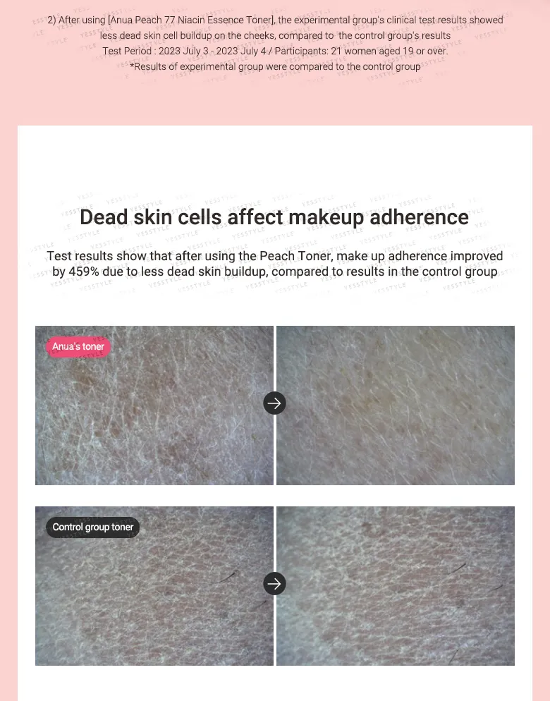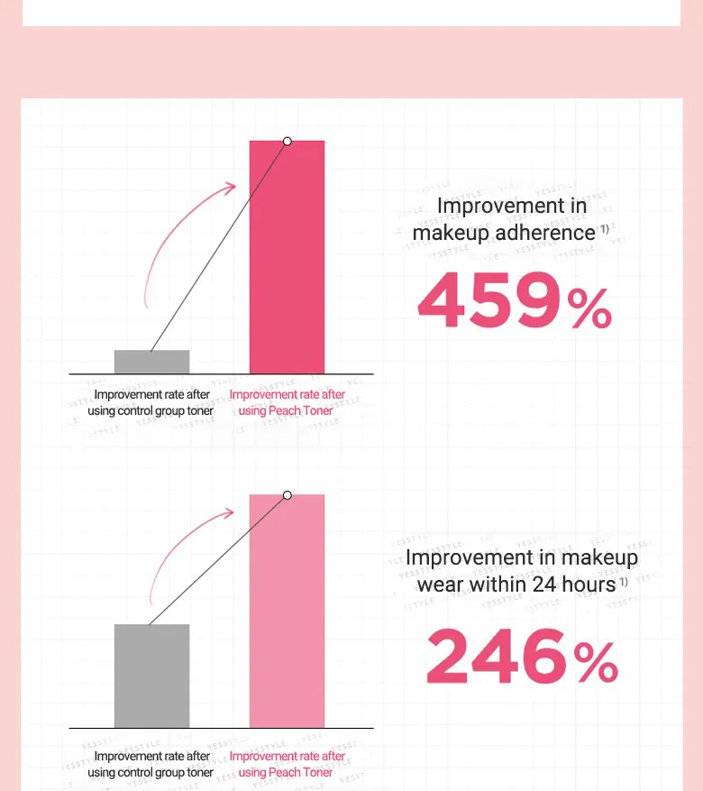 یکی از ویژگی های برجستهی این محصول، وجود سیستم Peach Melting Peel™ است که به آرامی سلول های مرده ی پوست را از بین میبرد و پوست را تازه و درخشان میکند. این سیستم به بهبود بافت پوست و کاهش منافذ باز کمک میکند و پوست را صاف و شاداب نشان می دهد.