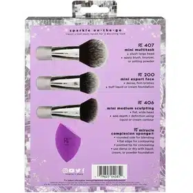 ست براش اسپارکل 4 تکه ریلتکنیک حاوی سه براش و یک اسفنج با کیفیت و عالی برای افرادی است که میخواهند آرایشی زیبا و جذاب داشته باشند. این براشها از پرزهای بسیار لوکس و نرمی ساخته شدهاند که باعث شده بسیار صاف و نرم باشند. این براشها کاملا ضد خشونت علیه حیوانات بوده و مناسب برای افرادی است که وگان هستند.