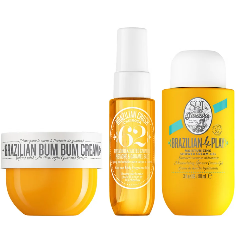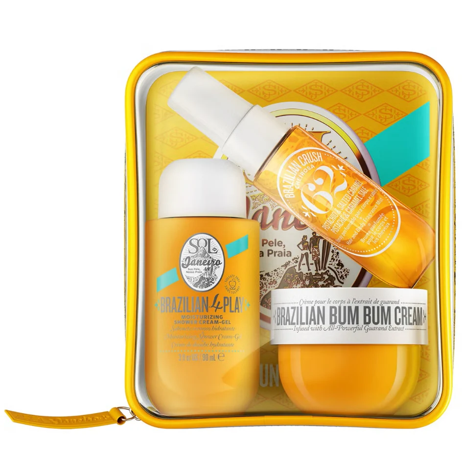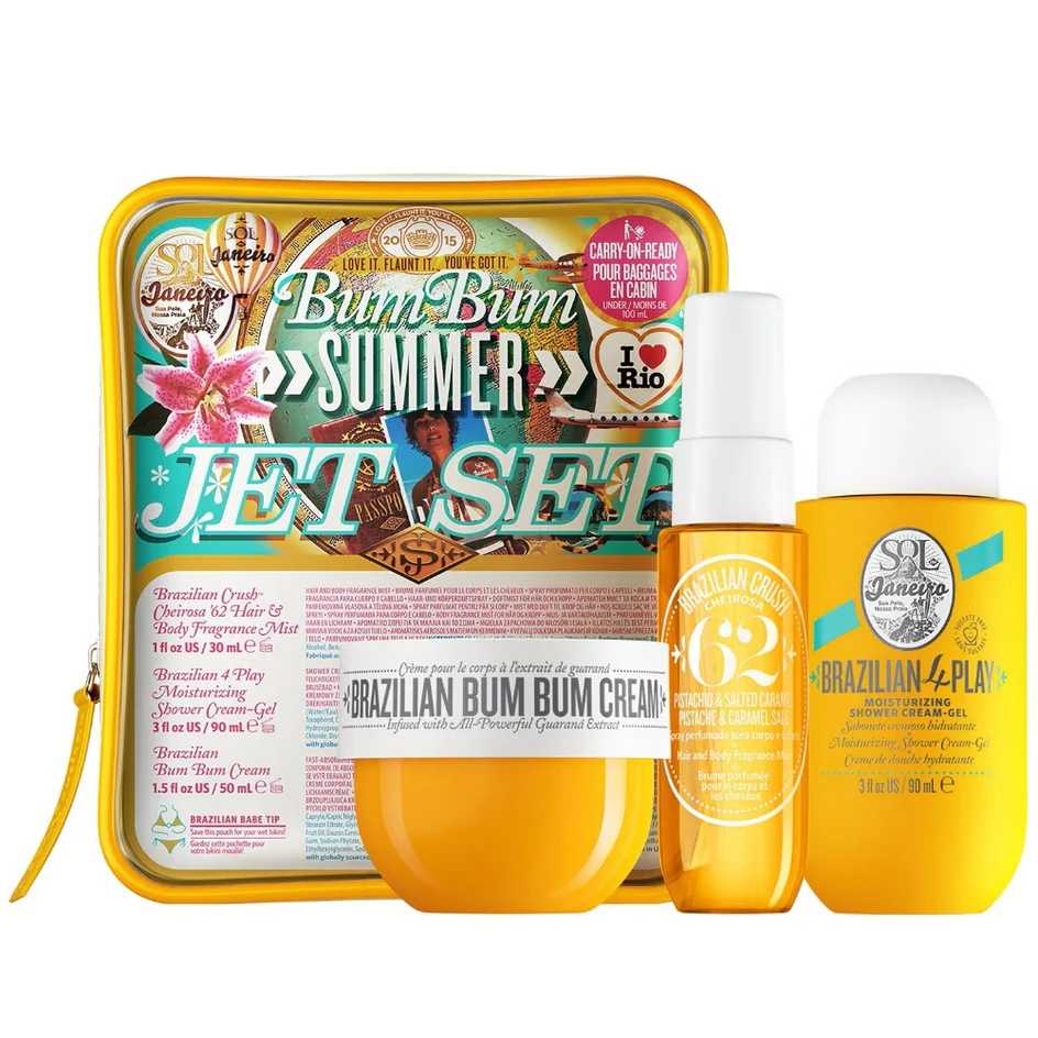 ست تابستان برزیلی سول دی ژانیرو“Sol de Janeiro Bum Bum Summer Jet Set” یک مجموعه مسافرتی محبوب از محصولات مراقبت از بدن از برند سول دی ژانیرو است که توسط برند برزیلی Sol de Janeiro ارائه میشود. ست تابستان برزیلی سول دی ژانیرو حول رایحه نمادین و بسیار پرطرفدار Cheirosa ’62 میچرخد که الهام گرفته از سواحل آفتابی ریودوژانیرو و بوی خاص کرم معروف Bum Bum این برند است. هدف از این ست، فراهم کردن یک روتین کامل برای نرمی، صافی و خوشبویی پوست، به ویژه برای سفر یا امتحان محصولات برای اولین بار است.
