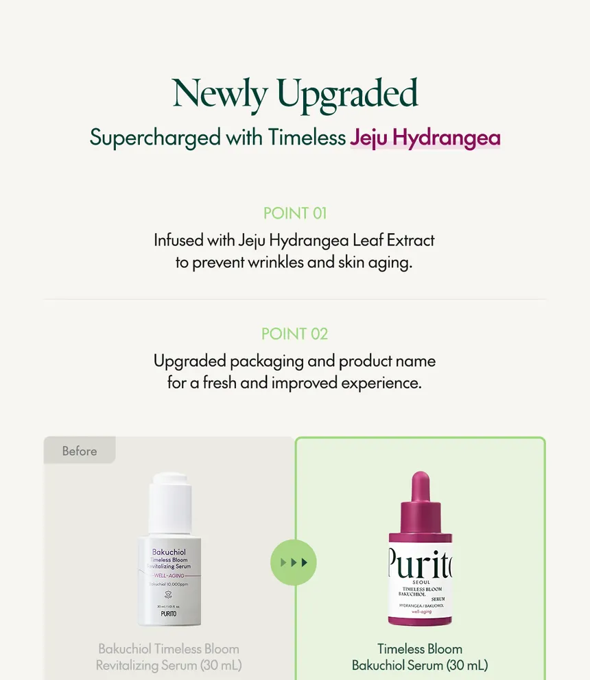 سرم باکوچیول پیوریتو سئول (Purito SEOUL – Timeless Bloom Bakuchiol Serum) یک محصول مراقبت از پوست است که حاوی باکوچیول، پپتیدها و سایر مواد مغذی است. این سرم برای کاهش چین و چروک، بهبود خاصیت ارتجاعی پوست، افزایش رطوبت و روشن شدن پوست طراحی شده است. در این متن به طور کامل در مورد این سرم و خواص آن توضیح داده شده است.