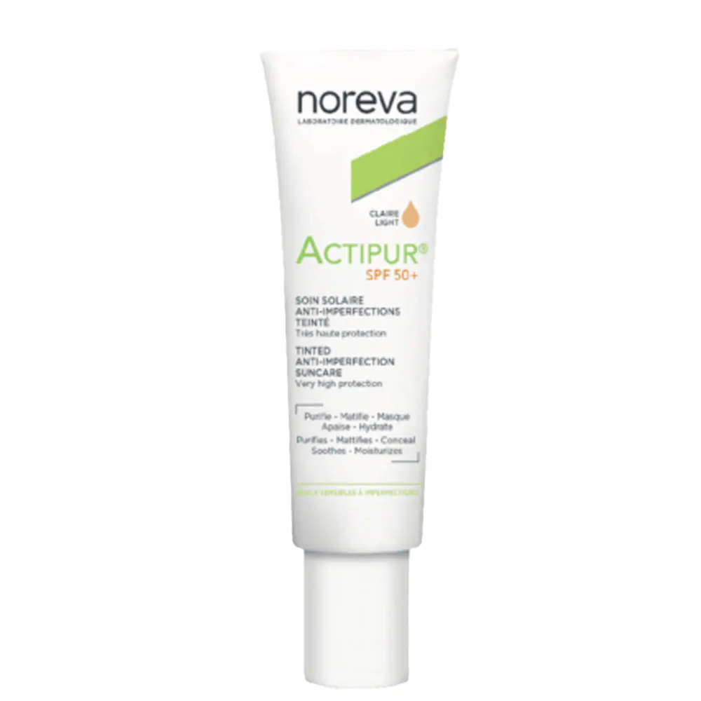 ضدآفتاب اکتی پور نوروا Noreva Actipur Anti-Imperfection Sunscreens SPF50+ (Skincare Light Shade) مجموعهای از محصولات تخصصی برند فرانسوی Noreva Laboratoires است که به طور خاص برای مراقبت از پوستهای چرب، مختلط و مستعد آکنه (دارای عیوب) در نوجوانان و بزرگسالان طراحی شده است. این ضد آفتاب یک محصول چندمنظوره (3 در 1) در این مجموعه است.
