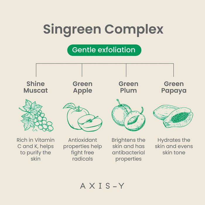 این محصول حاوی عصاره های طبیعی مانند عصاره پاپایا، عصاره خیار، عصاره سیب و عصاره انگور است. این عصارهها به تغذیه و آبرسانی پوست کمک میکنند و باعث میشوند پوست پس از لایهبرداری نرم و لطیف باقی بماند. عصاره پاپایا به عنوان یک آنزیم طبیعی لایهبردار عمل میکند و به حذف سلولهای مرده پوست کمک میکند.