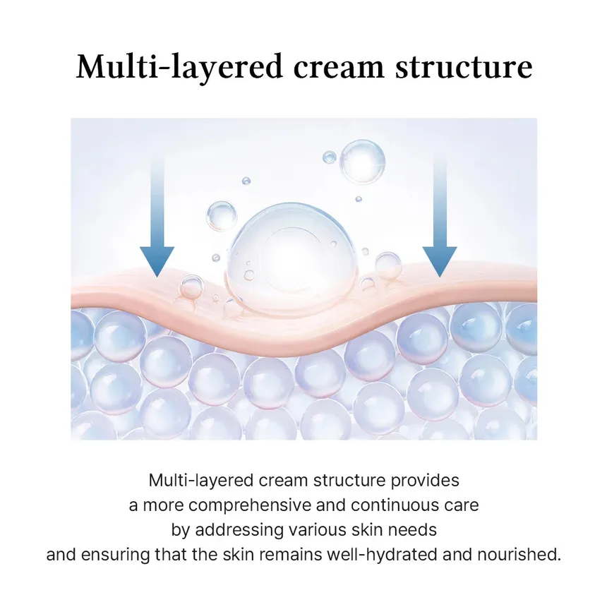 کرم Dr. Althea – 345 Relief Cream دارای ساختار چندلایهای است که از طریق هیدراتورهای گیاهی و اسید هیالورونیک، تغذیه و آبرسانی طولانیمدت به پوست ارائه میدهد. این ساختار چندلایهای به پوست کمک میکند تا به طور مداوم مرطوب و تغذیه شود.